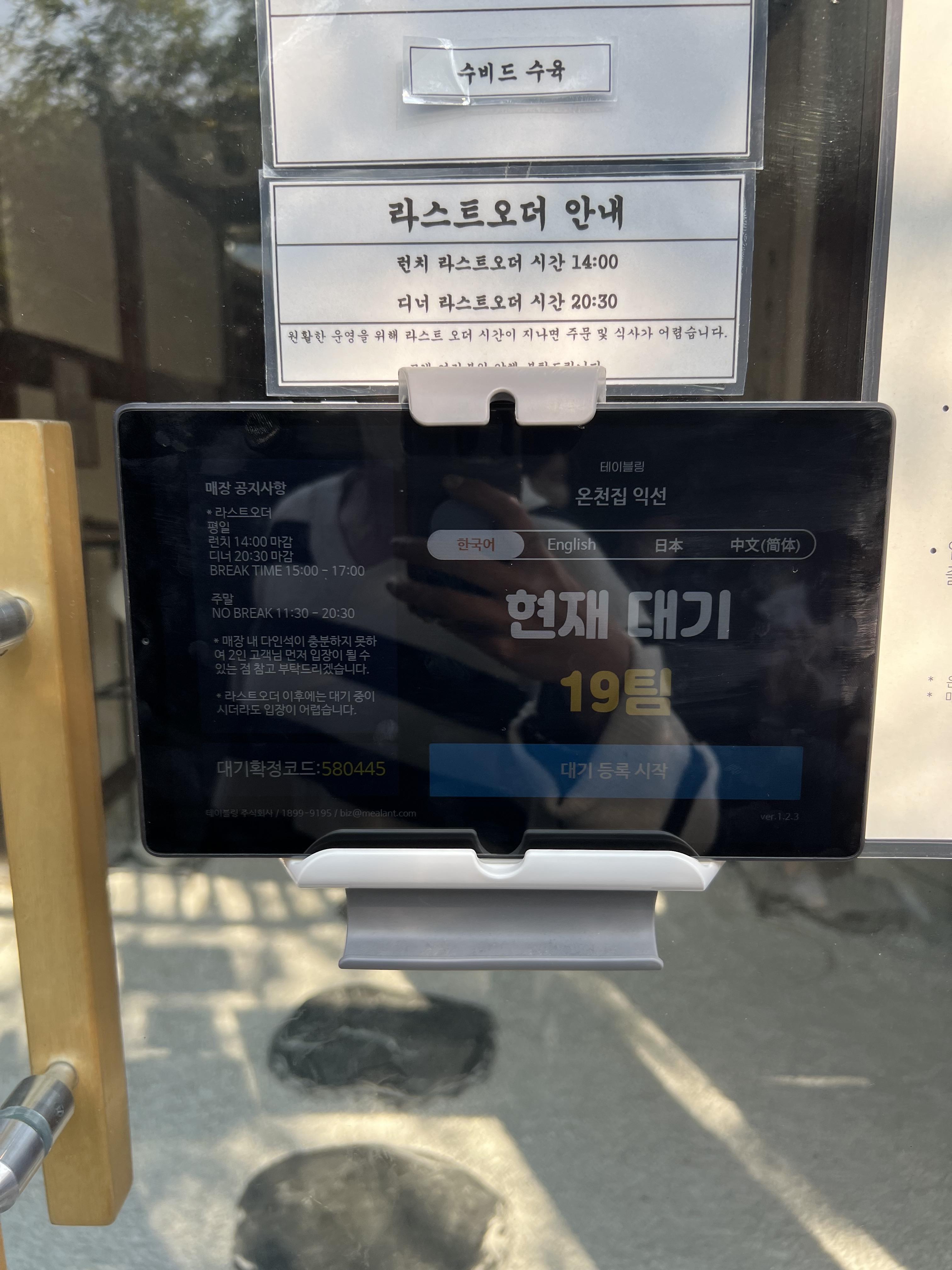 점심시간에 도착한 온천집은 이미 웨이팅이 많아서 19팀이나 있었습니다. 그래도 맛있는 샤브샤브를 먹기 위해서 기다렸습니다.