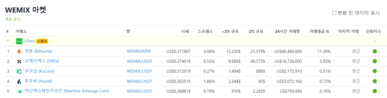 - 위믹스 코인마켓캡 링크 : https://coinmarketcap.com/currencies/wemix/