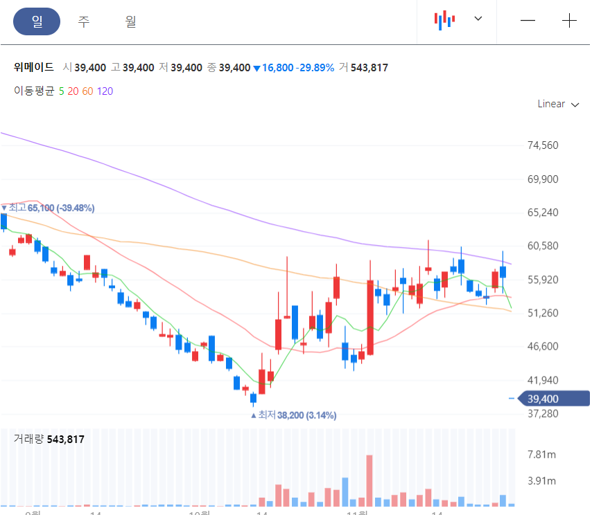 그동안 위믹스 프로젝트로 막대한 투자를 한 위메이드는 오늘 점하를 가면서 위기를 보여주었습니다. 다음 주에는 더 큰 하락폭이 예상이 됩니다.