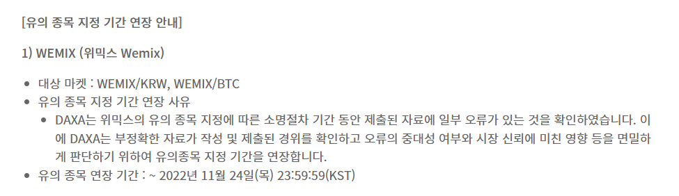 위믹스 코인의 유통량에 대한 이슈는 이전부터 있었으며, 이번에 디지털 자산 거래소 공동협의체 DAXA에 의하여 투자유의 종목으로 지정을 했습니다.