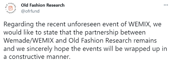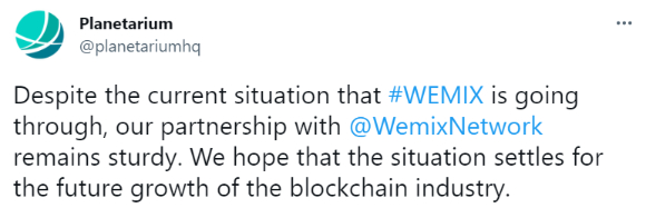 올드 패션 리서치, NGC벤처스, 플라네타리움랩스, 메타버스 마그나, 에픽 리그 등의 업체들이 위믹스 사태의 원만한 해결과 위메이드와의 파트너십을 재확인하는 을 담은 입장을 트윗을 하면서 견고한 파트너십을 보여주었습니다.