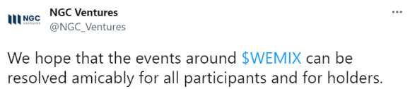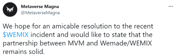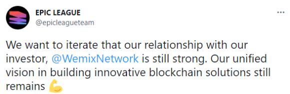 올드 패션 리서치, NGC벤처스, 플라네타리움랩스, 메타버스 마그나, 에픽 리그 등의 업체들이 위믹스 사태의 원만한 해결과 위메이드와의 파트너십을 재확인하는 을 담은 입장을 트윗을 하면서 견고한 파트너십을 보여주었습니다.