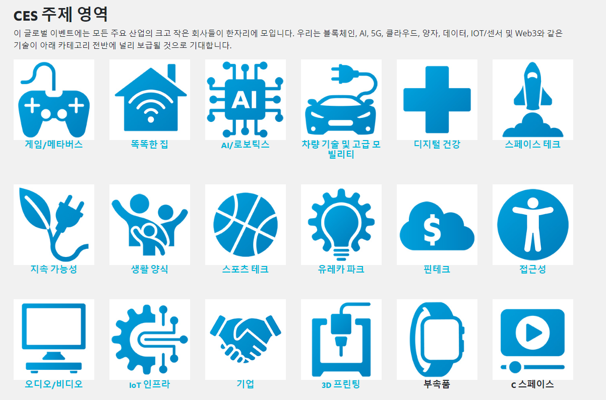위 사이트를 가시면 일별, 시간대별, 주제별로 CES 2023 일정을 확인하실 수 있습니다.