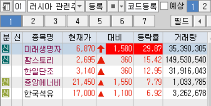 러시아 우크라이나 전쟁관련주로 선반영이 되있는 상태이지만