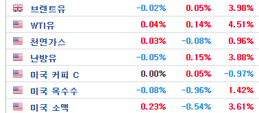 인베스팅닷컴의 원자재 가격을 보면 WTI유 4.5%