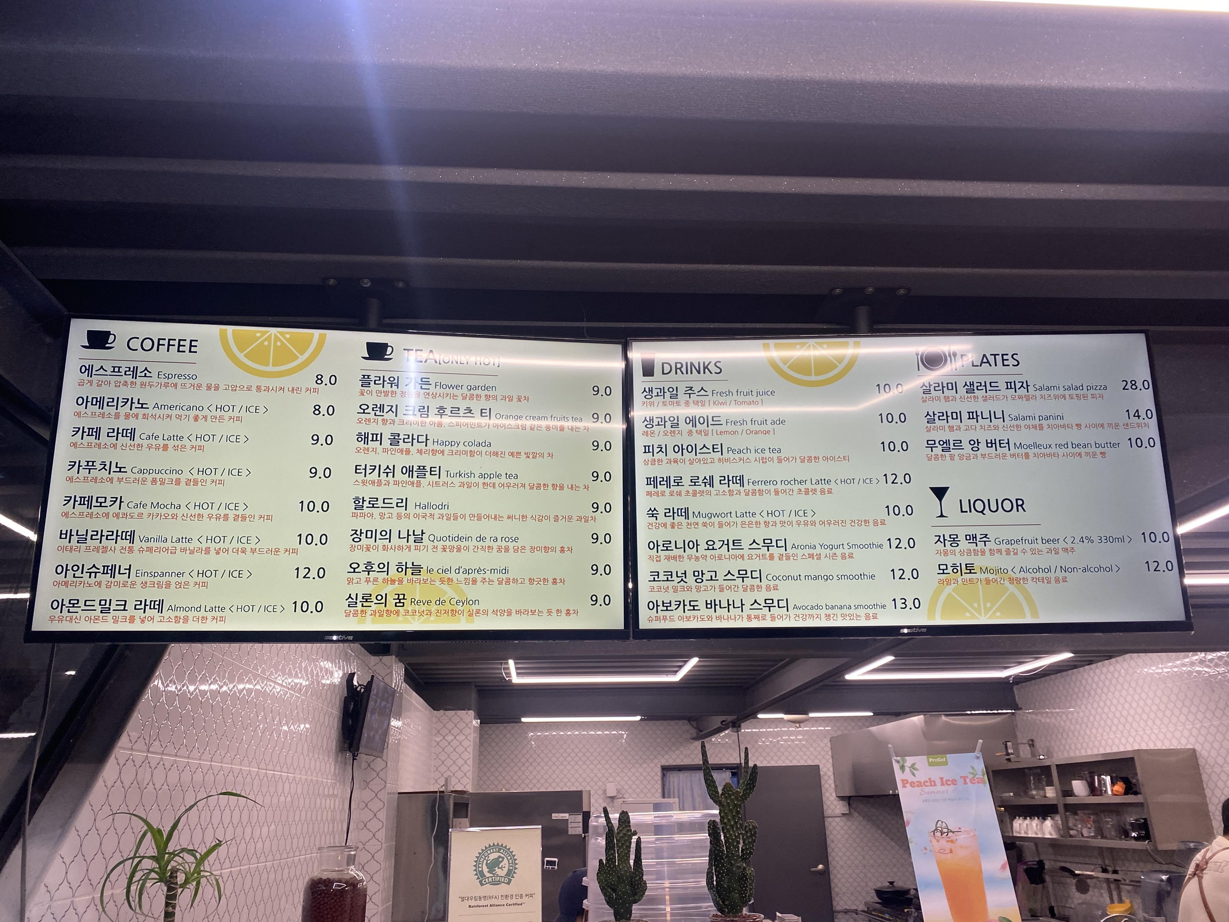 양주 카페 오랑주리 주문은 1층 중앙에 위치해 있으며, 오렌지 정원이라고 소개가 되어있습니다. 메뉴는 커피, 차, 음료, 베이커리가 있습니다. 솔직히 이 정도 크기에 이정도 가격이면 괜찮다고 생각을 했습니다. 식물원 입장료를 지불하고 커피까지 마시는 기분이었습니다.