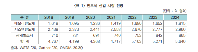 - 시스템반도체는 글로벌 반도체 시장의 약 60~70%를 차지하는 거대 시장으로 초연결・ 초지능 기술의 전산업 확산에 따라 꾸준한 성장이 전망됨