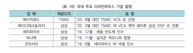- 중소 팹리스 업체의 경우 파운드리 기업이 지정하는 디자인하우스가 이를 대신하는 상황
