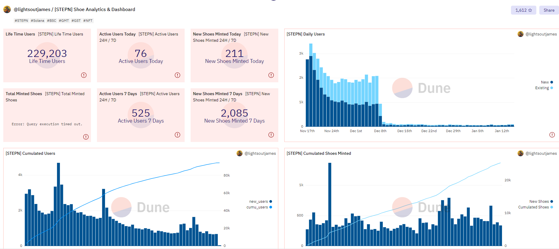 스테픈의 신규유입 추이를 보면 현저히 낮은상태인걸 알 수 있습니다. 하루에 약 76명 정도인데 작년 11월에는 하루 신규유입수만 1,000명이 넘는 걸 감안하면 아직까지는 늘어나지는 않은 상태입니다.