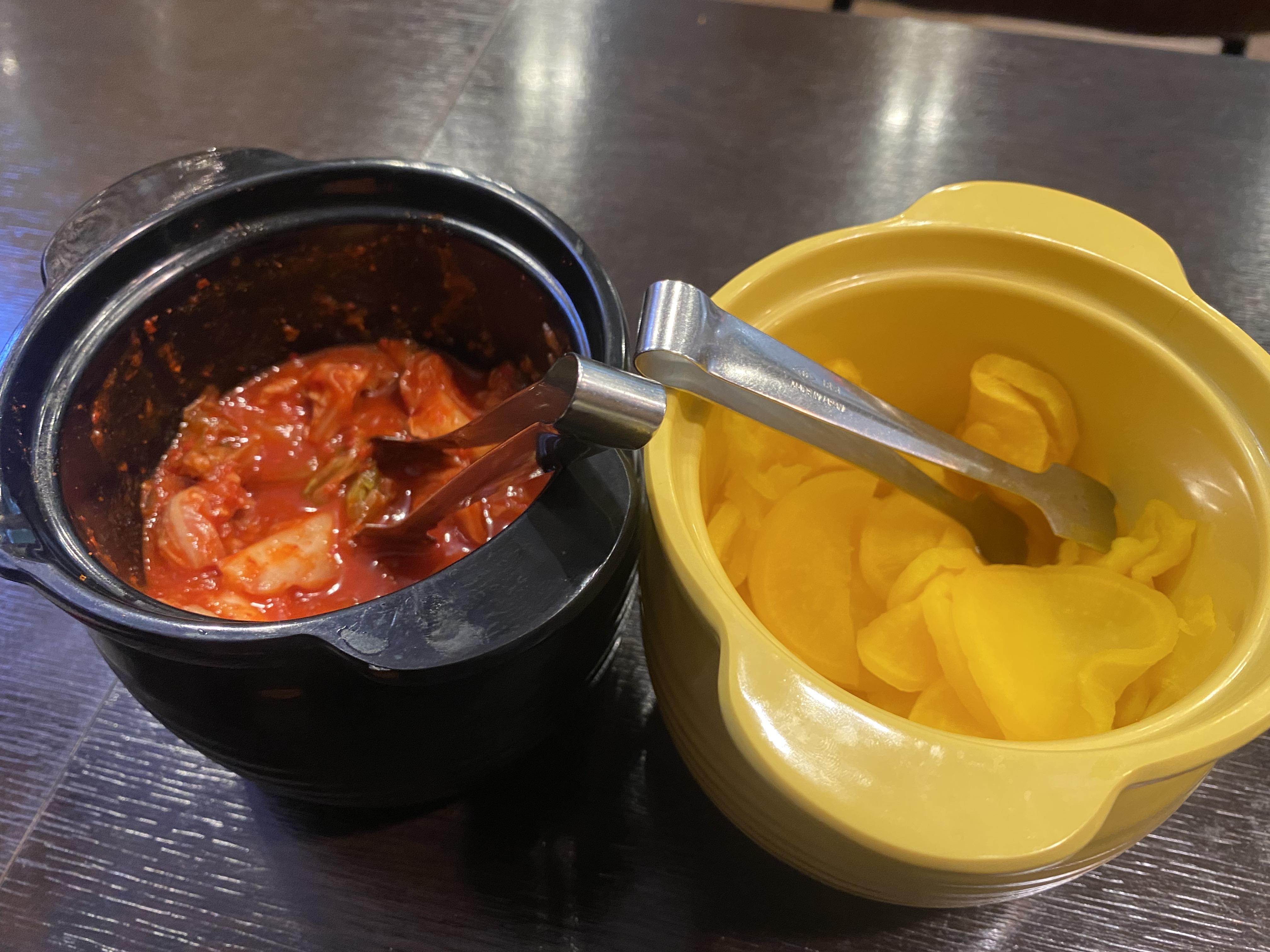 홍대돈부리 기본반찬은 김치와 단무지가 제공됩니다. 아무래도 김치는 필수이죠.