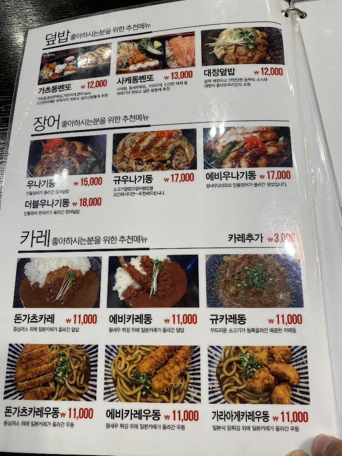 인천스퀘어7 홍대돈부리는 덮밥, 장어, 카레, 연어, 면, 사이드메뉴로 나뉘어 있습니다. 저는 홍대돈부리의 대표메뉴인 가츠동을 주문하여 먹었습니다.
