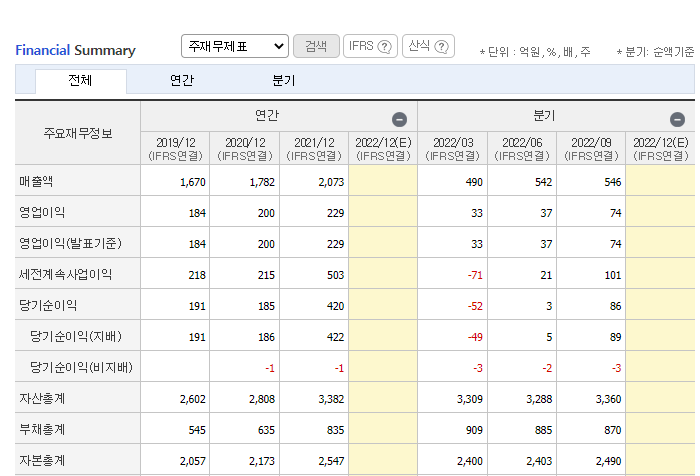 안랩의 재무제표