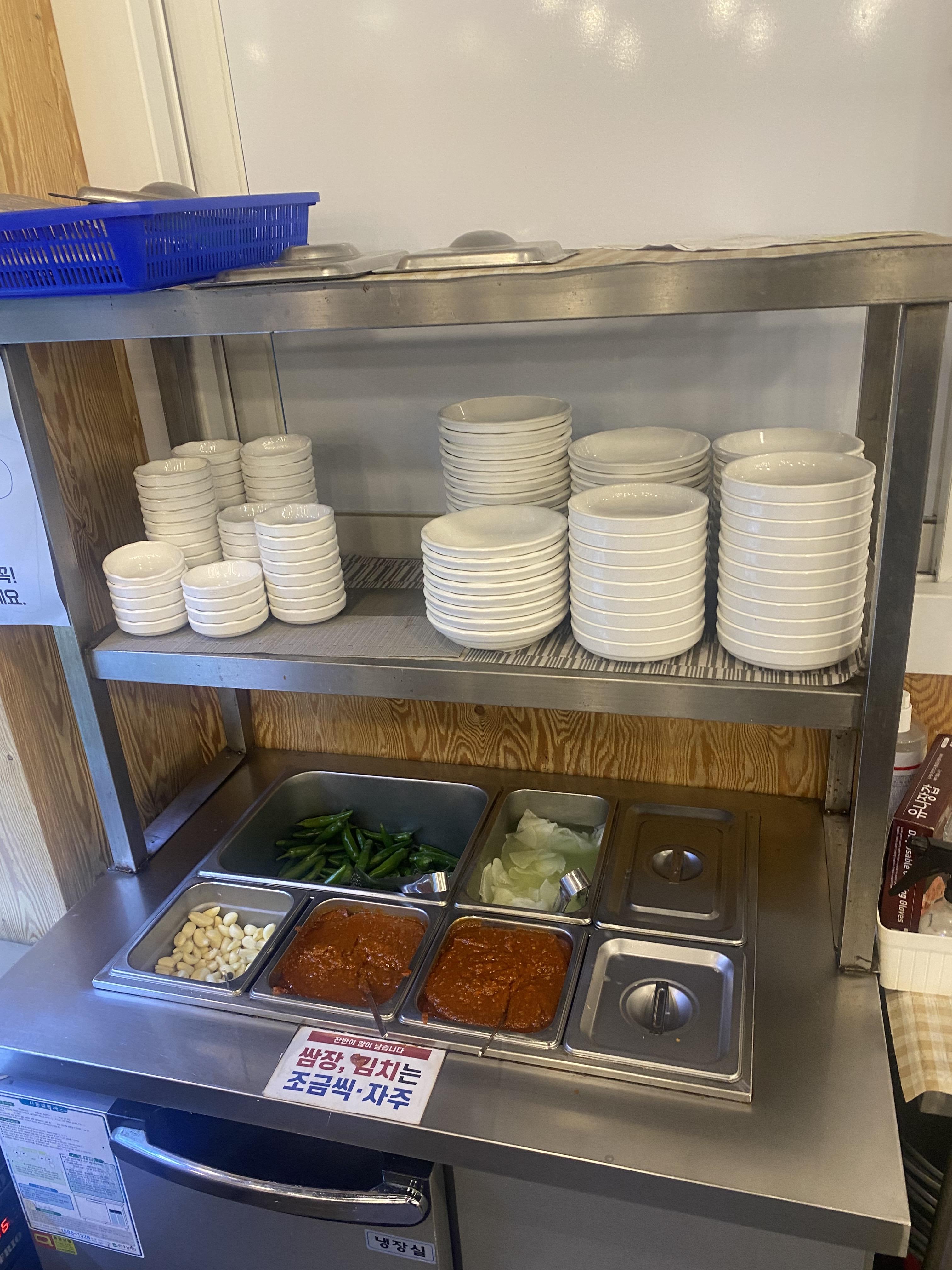 명가 김포 참숯 갈비 셀프바에는 신선한 채소들이 준비되어 있습니다. 그 밖에도 고추, 마늘, 쌈장, 무 등이 마련되어 있어서 먹을 만큼 담아가시면 됩니다.