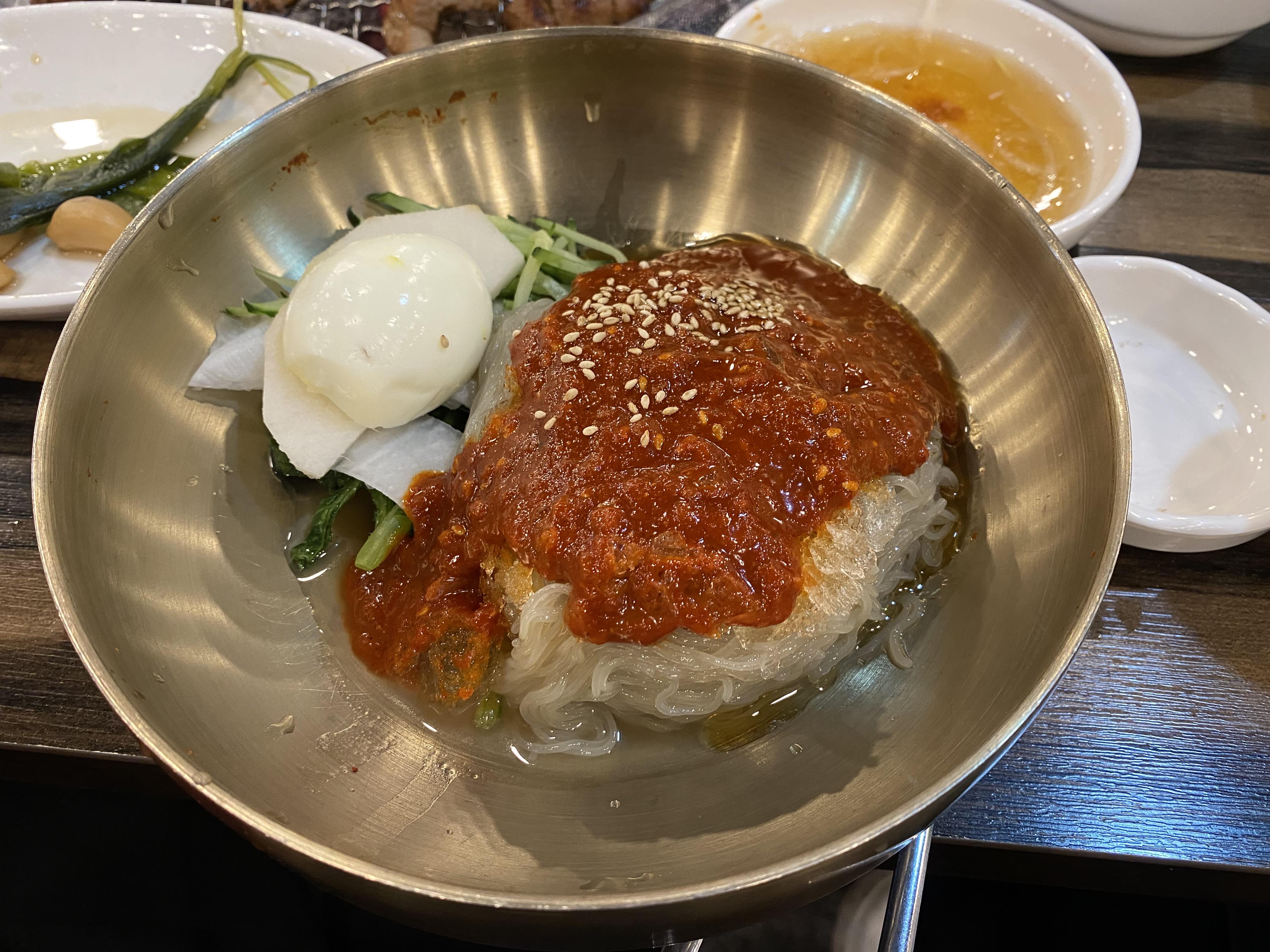 비빔냉면을 주문했는데 솔직히 그렇게 맛있지는 않았습니다. 그래도 LA양념갈비와 함께 먹으니 맛있게 먹을 수 있었습니다.