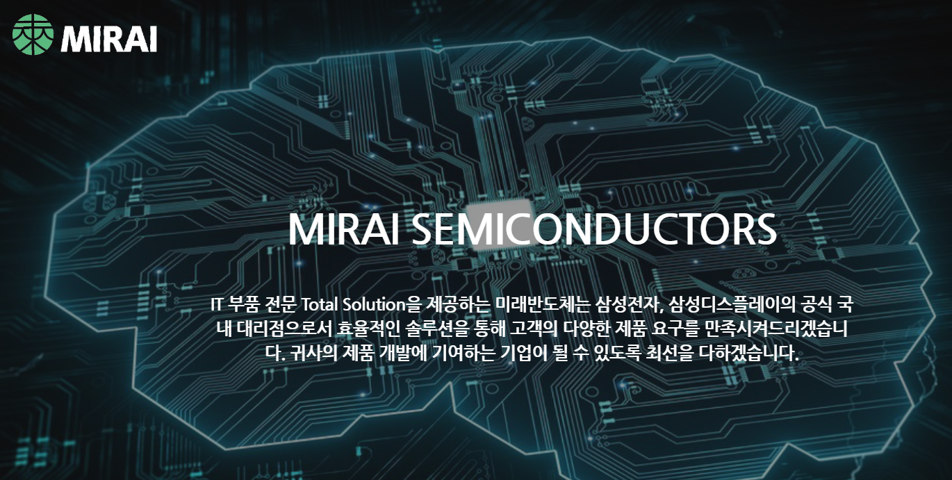 미래반도체는 전자, 전기제품 또는 부품제조, 판매 및 수출입업을 사업의 목적으로 하고 있으며, 반도체 유통업을 주사업으로 하고 있습니다. 미래반도체는 삼성전자 출신의 반도체 전문가들이 모여 IT 발전에 기여하고자 종합반도체 Provider를 목표로 1996년 1월 설립되었습니다. 설립과 동시에 삼성전자 반도체 대리점으로 등록되어 현재까지 지속적인 거래를 유지하고 있습니다.