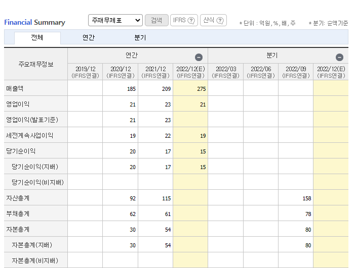 꿈비의 2022년 매출액 275억 원에 비해서 현재 따상으로 시작하면서 시가총액 1,000억 원이 넘어선 걸 확인할 수 있습니다.