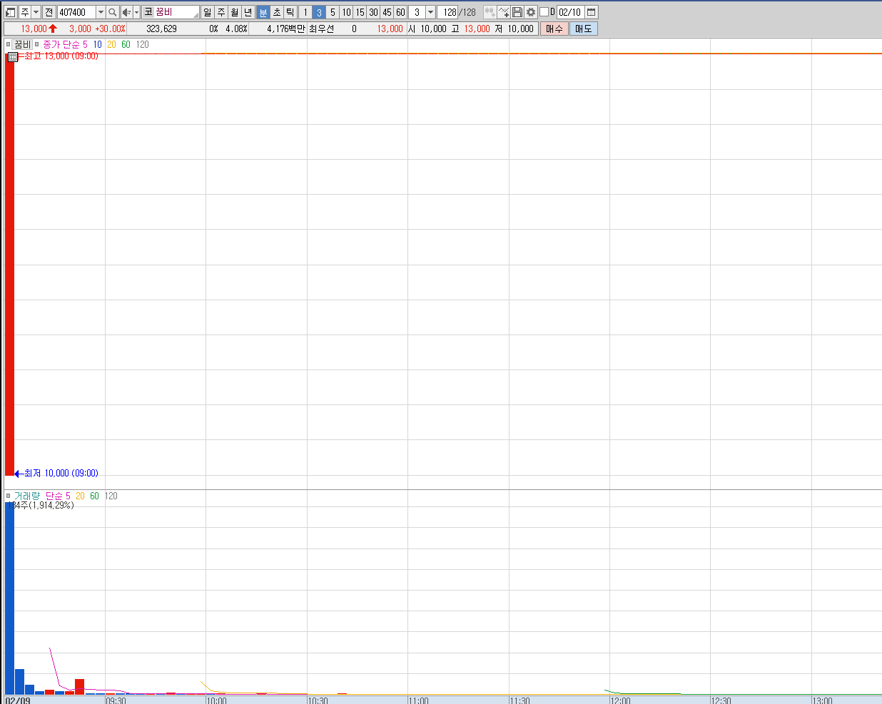 꿈비는 장시작하자마자 따상을 만들면서 끝까지 지켜줬으며, 잔량이 4,000,000주나 쌓이면서 많은 관심을 보여준 종목입니다. 하지만 신규상장주는 조심해서 접근할 필요가 있으니 참고해 주시기 바랍니다.