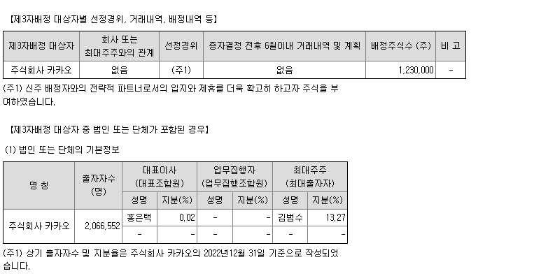 이미 얼라인은 현 이사진들의 임기연장을 약속했고 이에 따라서 새로 주식을 발행해서 카카오에 2대 주주 수준의 지분을 발행해서 넘기는 형태로 신주, 전환사채 발행이 결정이 났습니다.