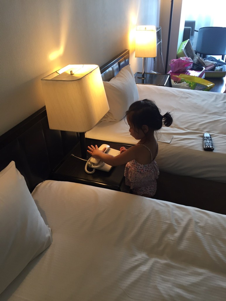 리조트에 와서 좋은지 딸이 침대에서 신나게 뛰고 놀았습니다.
