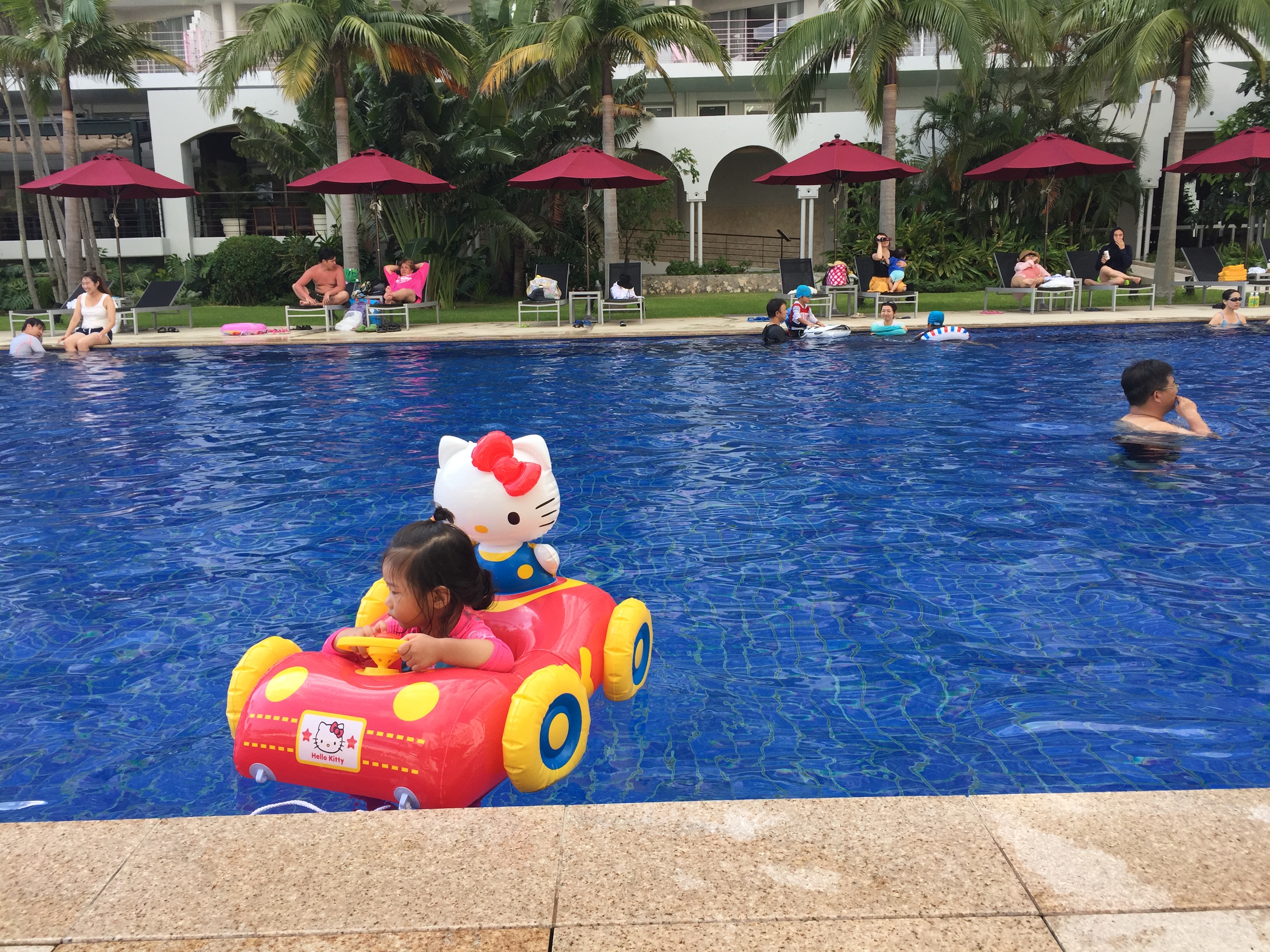 마하이나 웰니스 리조트 체크인 후에 저희는 바로 수영복으로 환복 후에 수영장으로 달려갔습니다. 딸이 물을 워낙 좋아하기에 튜브도 챙겨 왔지만 튜브보다는 저와 노는 걸 좋아했습니다. 한 시간 정도 놀아도 지치지 않는 기색에 너무 힘들었습니다. 아이와 함께 여행을 온다면 여행보다는 리조트 내에 있는 수영장을 이용하시는 걸 추천드립니다.