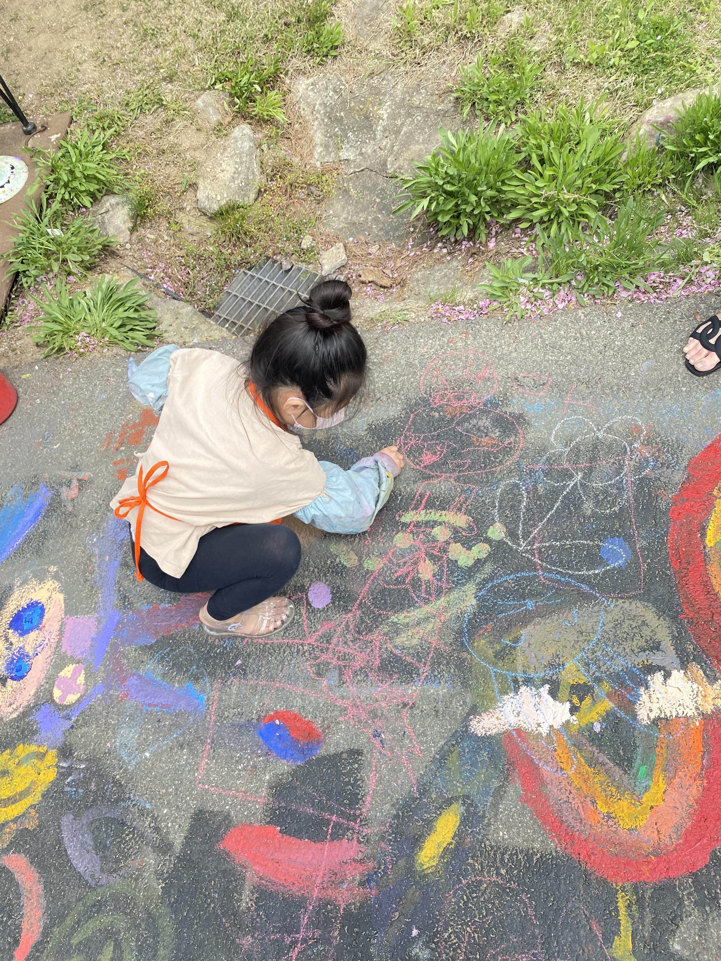 당림미술관 바닥화는 분필로도 바닥에 그릴 수 있고, 물감으로도 그릴 수 있습니다. 먼저 분필로 선을 긋고, 안에다 색칠을 하면서 그림을 완성시킵니다. 아이에게는 종이에다가 그림을 그린다는 틀을 깨고, 어디든 붓만 있으면 그림을 그릴 수 있다는 창의적인 생각을 심어줄 수 있는 체험입니다.