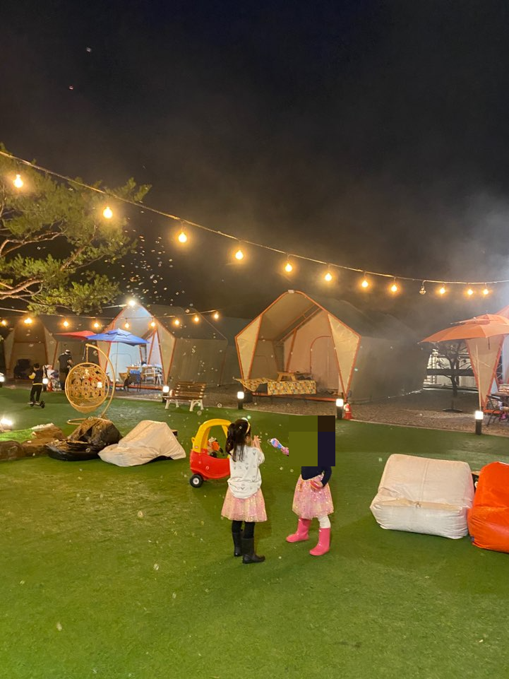 포천 파인벨리 글램핑 야경은 더욱 화려하고 멋있었습니다. 밤하늘이 선명하게 잘 보이고 조명이 더해져서 너무 이뻤습니다. 아이들도 좋았는지 밤이 깊어져도 신나게 놀았습니다.