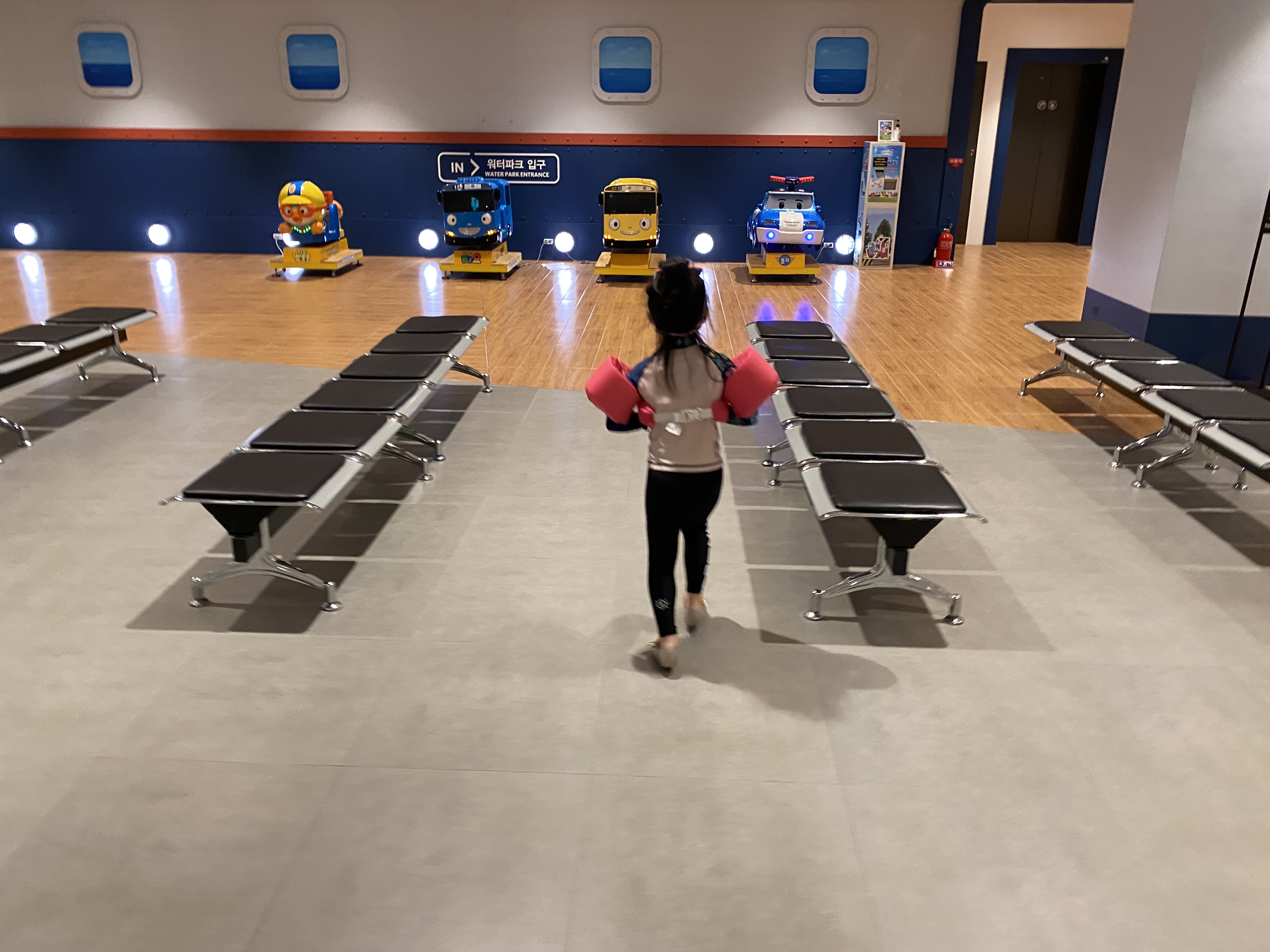 사람이 많이 없는 날에 갔는지 저희만 워터파크를 즐겼습니다. 실내존 파도풀은 최대수심 1.8이며, 구명조끼를 착용 후에 이용이 가능합니다. 그리고 수영모자는 필수이니 참고해 주세요.