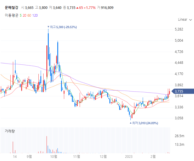 문배철강 차트