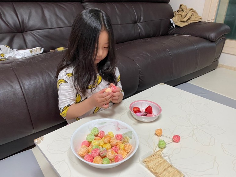 중간중간에 이렇게 뻥튀기를 맛있게 먹으면서 놀이를 할 수 있습니다.