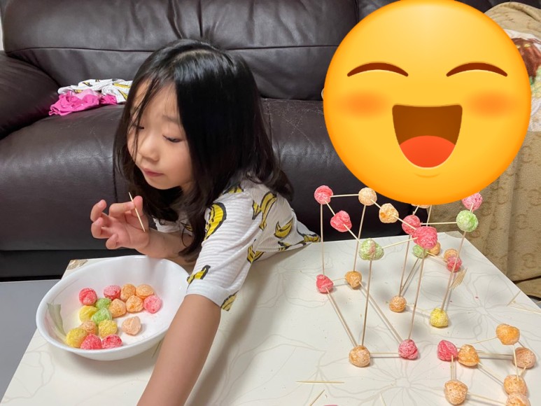 뻥튀기를 이쑤시게로 이어가다 보면 크게 만들 수도 있으며, 시간도 금방 갑니다. 퇴근 후에 평일 오후에 약 1시간 정도 할 수 있는 놀이입니다.