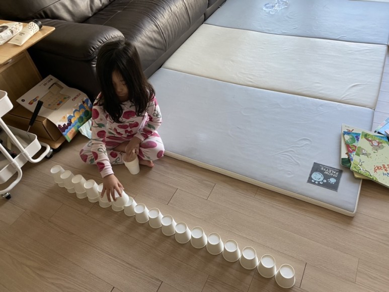 종이컵을 쌓으면서 놀게 된다면 집중력과 소근육을 자극시켜줄 수 있습니다. 혼자 하기 어려울때는 같이 도와주면서 성취감을 느낄 수 있도록 해줘야 합니다.