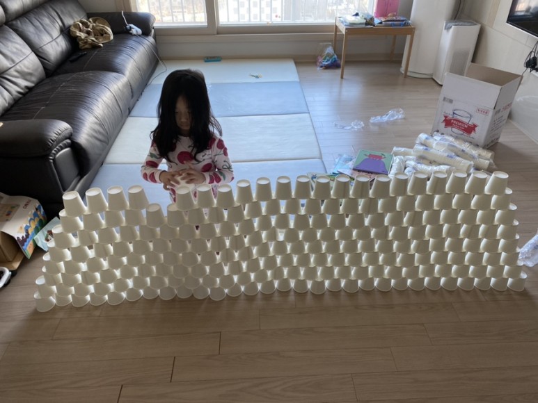 종이컵 놀이는 아이의 소근육과 대근육을 발달을 동시에 키울 수 있는 놀이입니다. 종이컵을 활용한 놀이는 다양하지만 저는 딸과 종이컵 쌓기와 계단 만들기 놀이를 했습니다. 먼저 종이컵 한 박스를 주문했습니다.