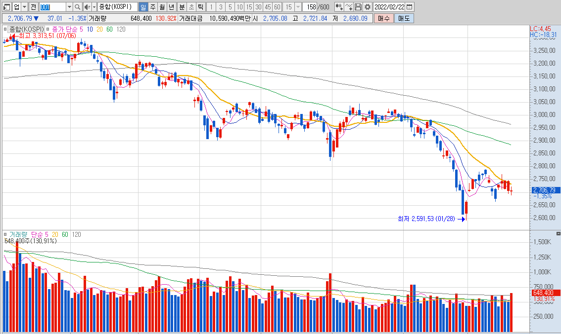 오늘도 국내 주식은 하락 마감을 하면서 지정학 리스크에