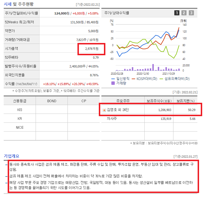 일신방직은 시가총액 약 3,000억에 해당하는 기업으로서