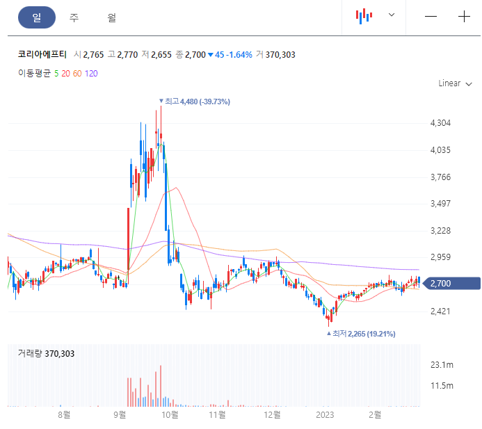코리아에프티 차트