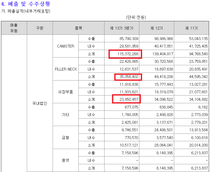코리아에프티 사업보고서 매출실적에 따르면 캐니스터, 필러넥, 의장부품 순으로 매출 비중을 차지하고 있습니다. 최근 캐니스터는 친환경 시대의 가속으로 인해서 2019년 매출 비중이 10% 에서 2021년 14%로 증가하는 추세를 보이고 있습니다.