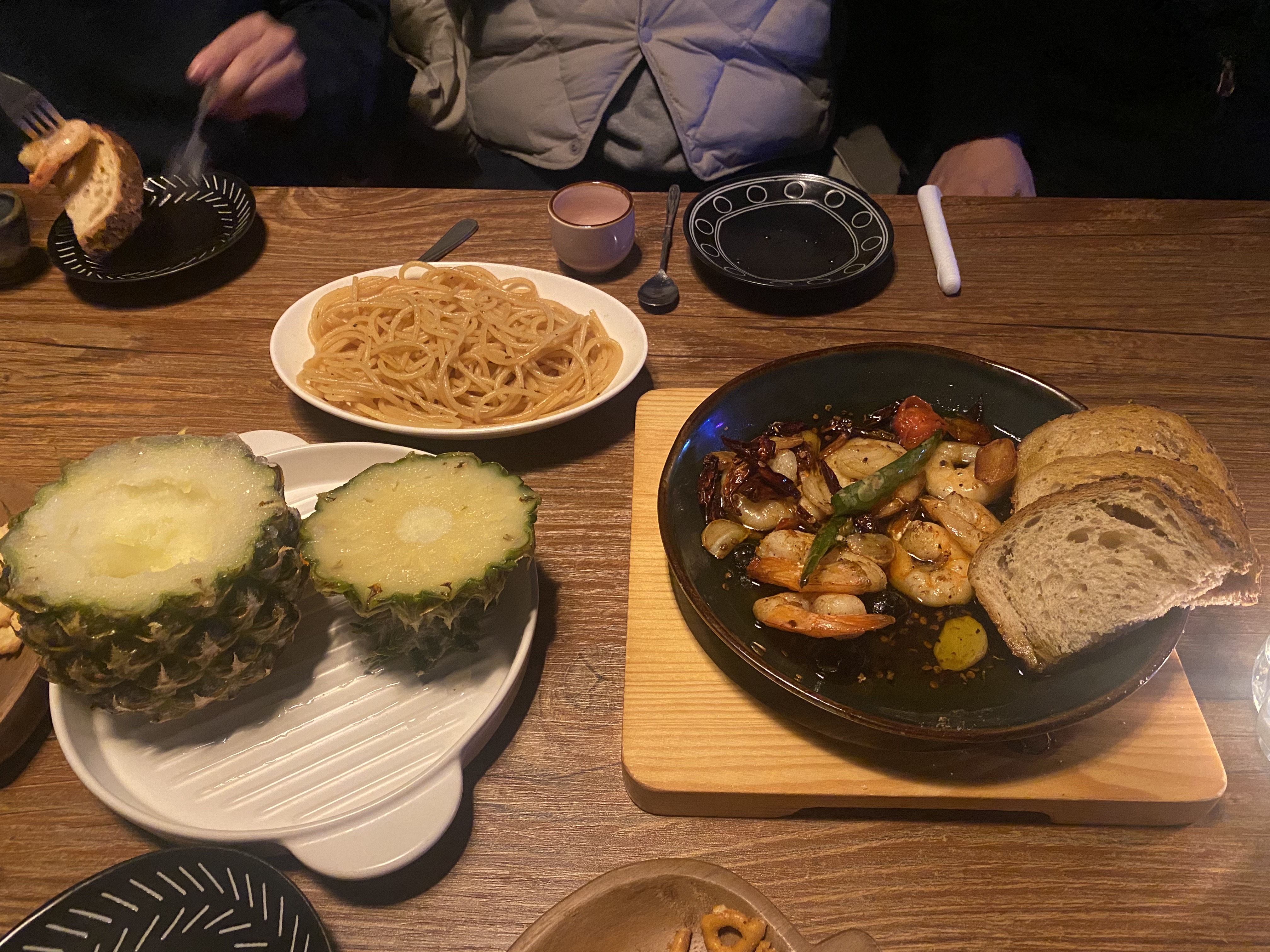 감바스 알 아히요는 약간 매우니 매운맛을 좋아하시는 분에게는 추천드립니다. 그리고 면은 따로 주문을 해야 하니 주문할 때 말씀해 주세요.