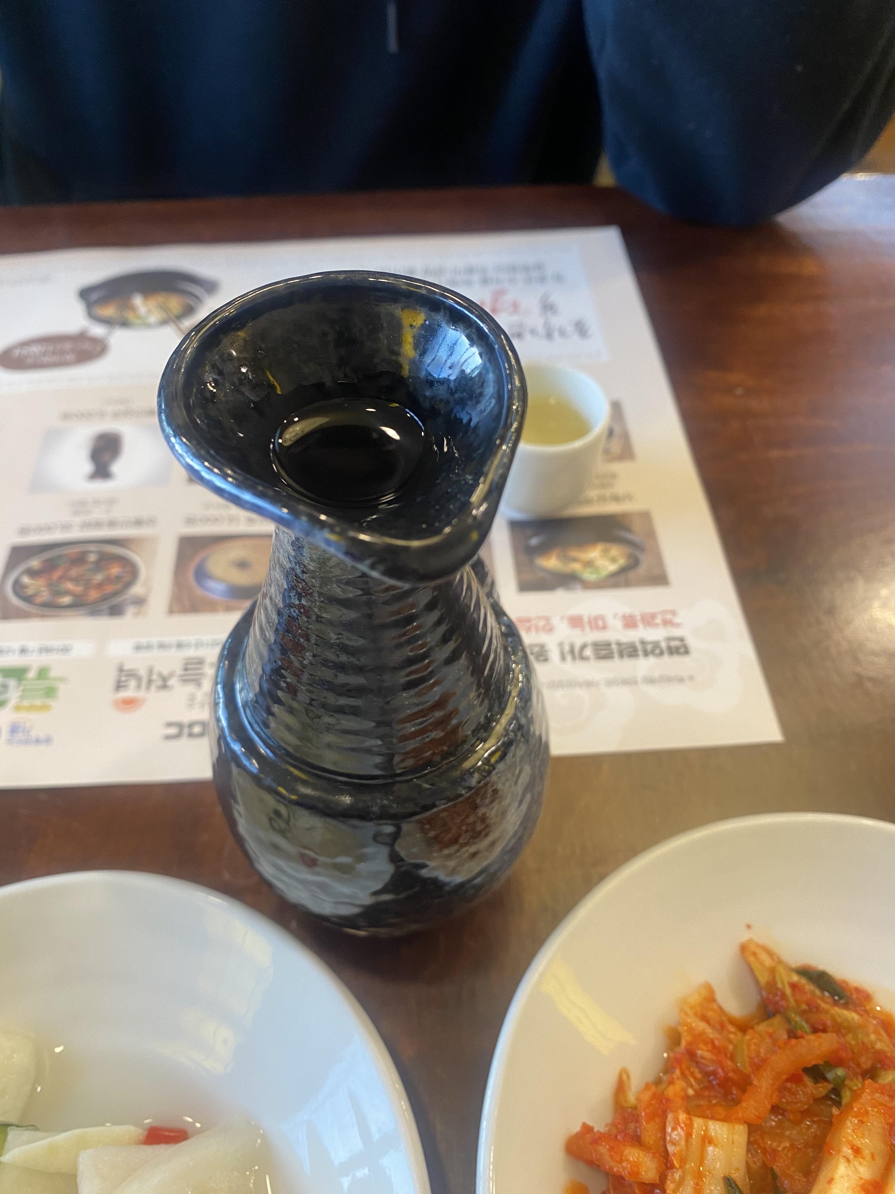 주문을 하고 한 10분안에 한방상황삼계탕이 나오는데 이때 인삼주 한잔이 같이 나옵니다. 이걸 삼계탕에 같이 넣어서 먹는다고 하네요.