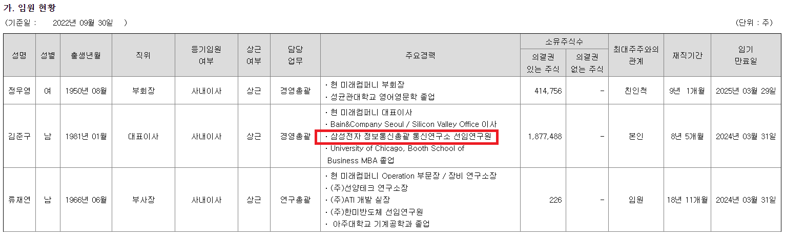 미래컴퍼니의 대표이사인 김준구 대표는 삼성전자 정보통신총괄 통신연구소 선임연구원으로 재임한 바 있습니다.