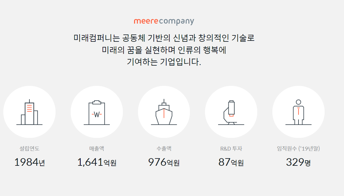 미래컴퍼니는 1984년도에 설립되어 반도체 및 디스플레이 패널 제조 장비 연구 개발 및 제조하는 사업 등을 영위하고 있습니다. 국내 최초 자체 개발한 Edge Grinder 장비를 기반으로 국내외 시장에서 미래컴퍼니의 위상을 확고히 하여 디스플레이 장비 분야 기술적 해자를 구축해 놓은 상태입니다.