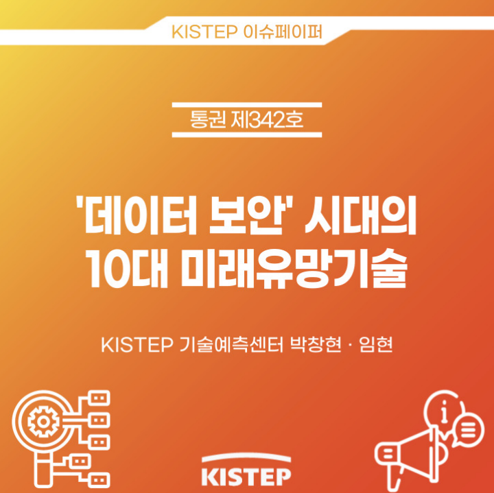 안녕하십니까 벨카입니다. 한국과학기술기획평가원(KISTEP)에서 발표한 자료인 '데이터 보안' 시대의 10대 미래 유망기술 보고서가 있어서 포스팅을 하겠습니다.