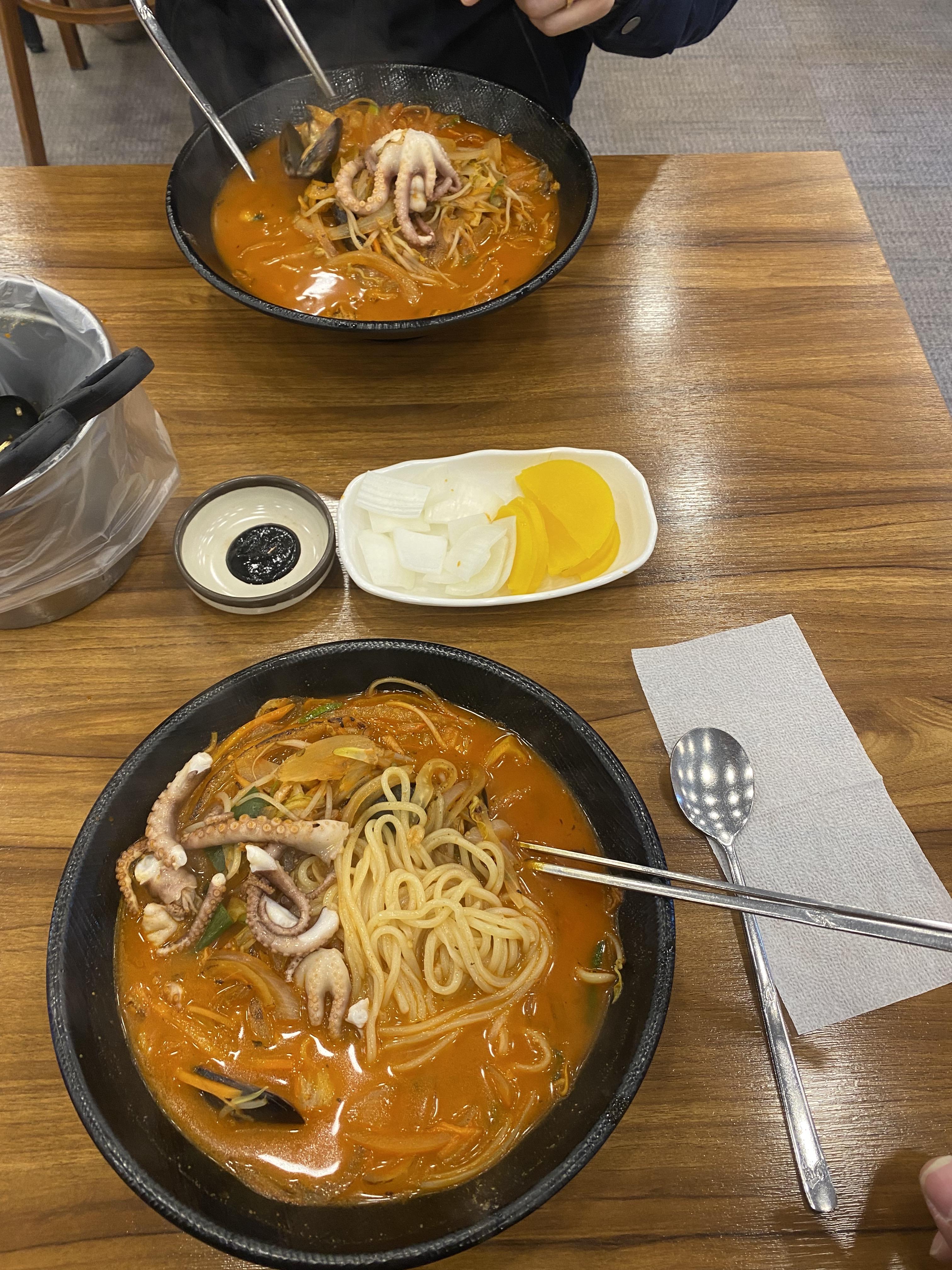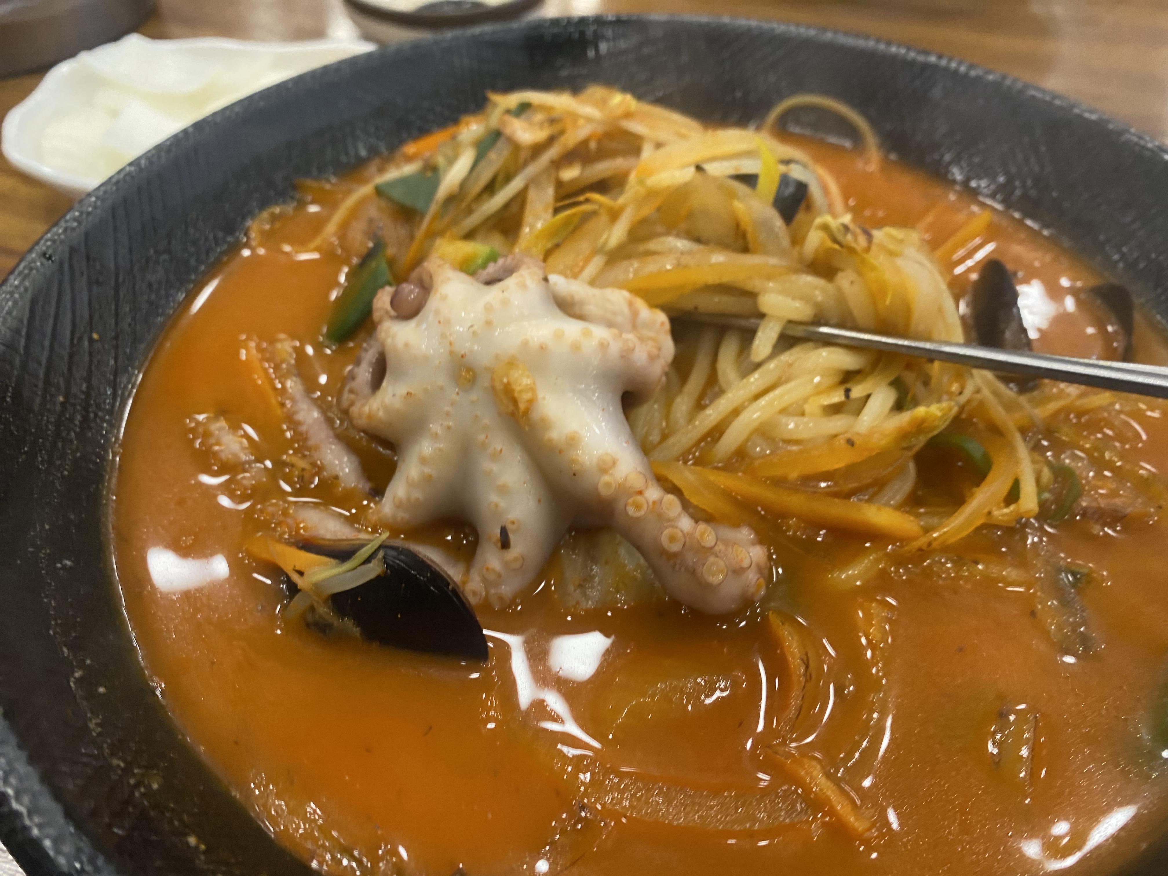 복많네 짬뽕 비주얼은 쭈꾸미 한 마리가 통째로 들어가기 때문에 엄청 맛있어 보입니다. 홍합도 딱 적당히 들어가고, 각종 채소와 면이 들어있습니다.
