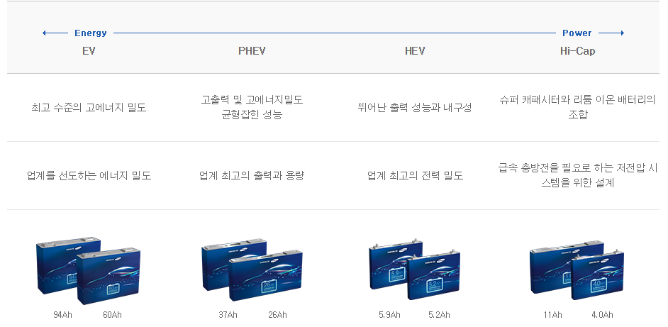 삼성SDI 자동차용 중형전지는 고효율, 고용량 리튬이온 2차전지를 개발하고 이를 자동차 완성업체에 공급을 하고 있습니다. 전기자동차를 충전할 댸 주행거리 확대 및 시스템 솔루션 경쟁력 확보가 중요해짐에 따라 기존 소재의 한계를 극복하기 위해서 기술개발에 주력을 하고 있습니다.