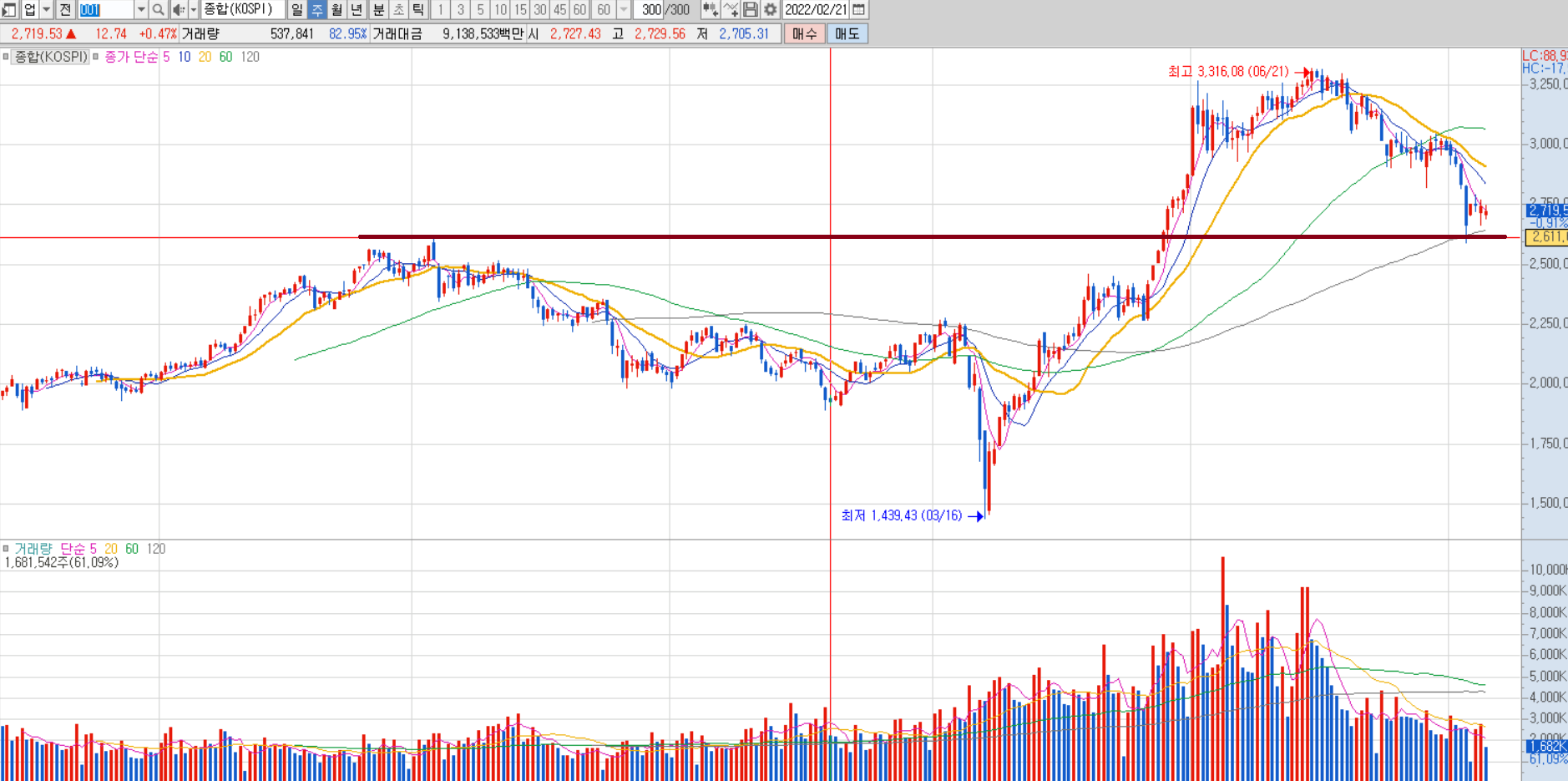 2,600선을 지지해주고 있으며, 이 지지선을 무너트리면