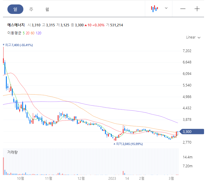 에스에너지는 현재 영업이익, 당기순이익 지속적으로 감소하면서 적자상황에 있습니다.