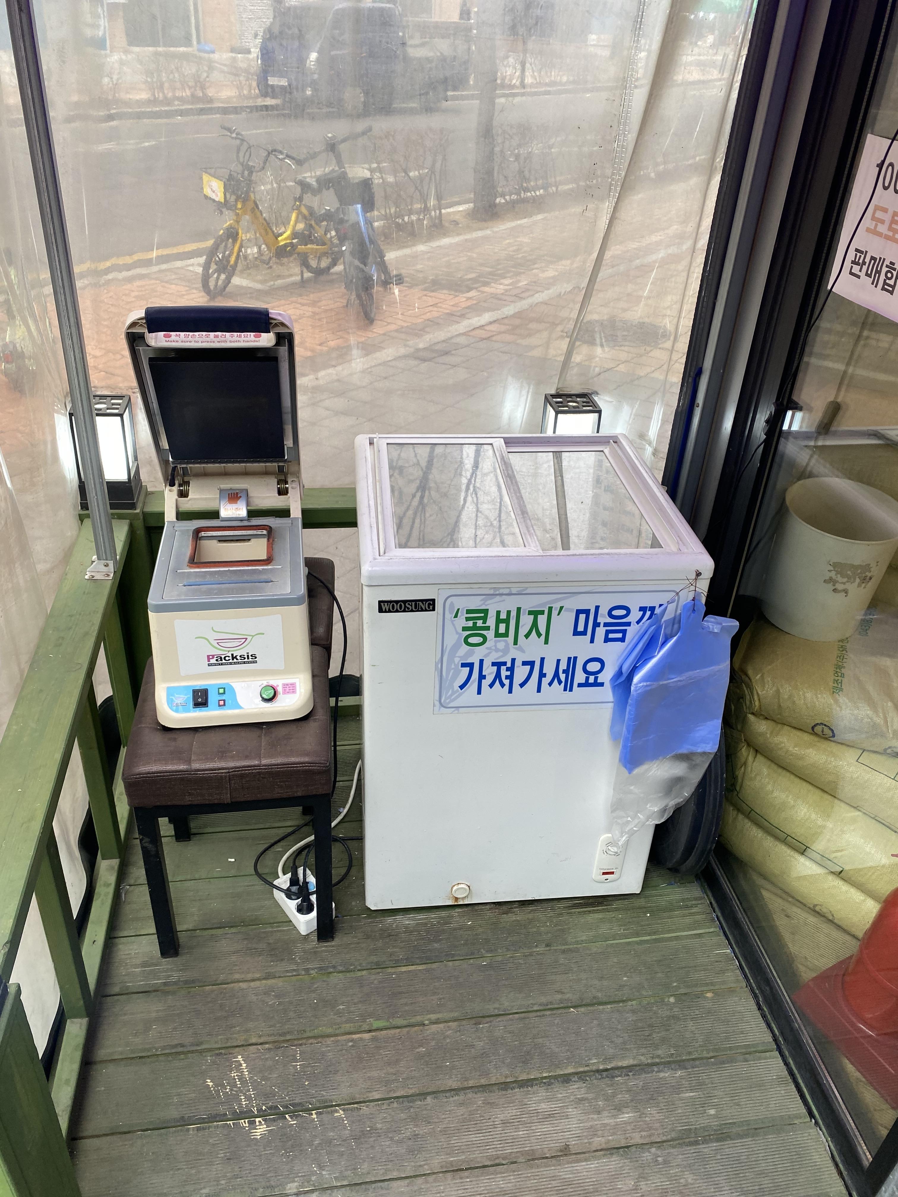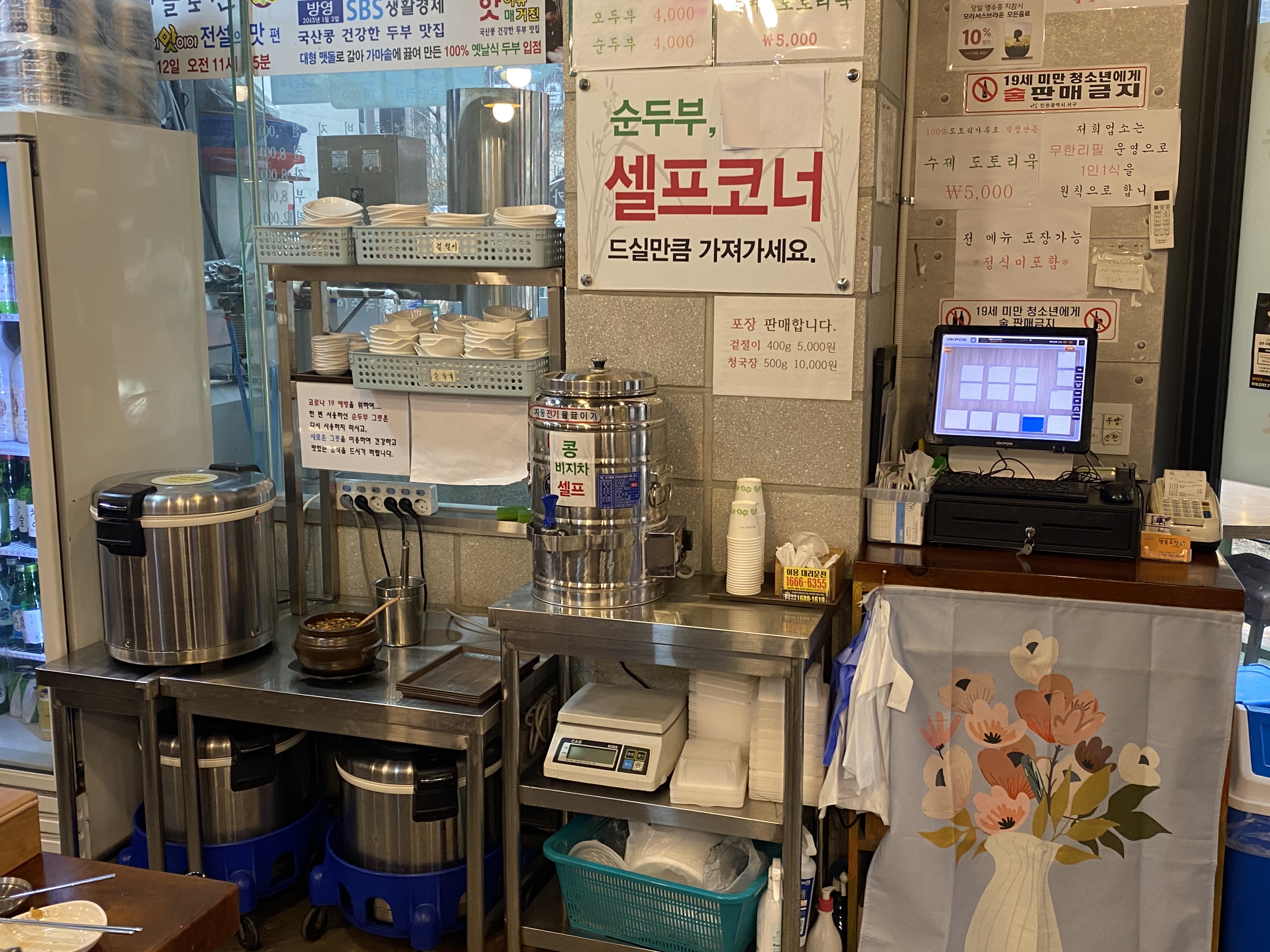 입구쫑에 콩비지를 마음껏 가져갈수 있게 비닐봉지와 콩비지가 마련되어 있습니다. 이런 사소한 것만 봐도 사장님의 정을 느낄 수 있습니다.