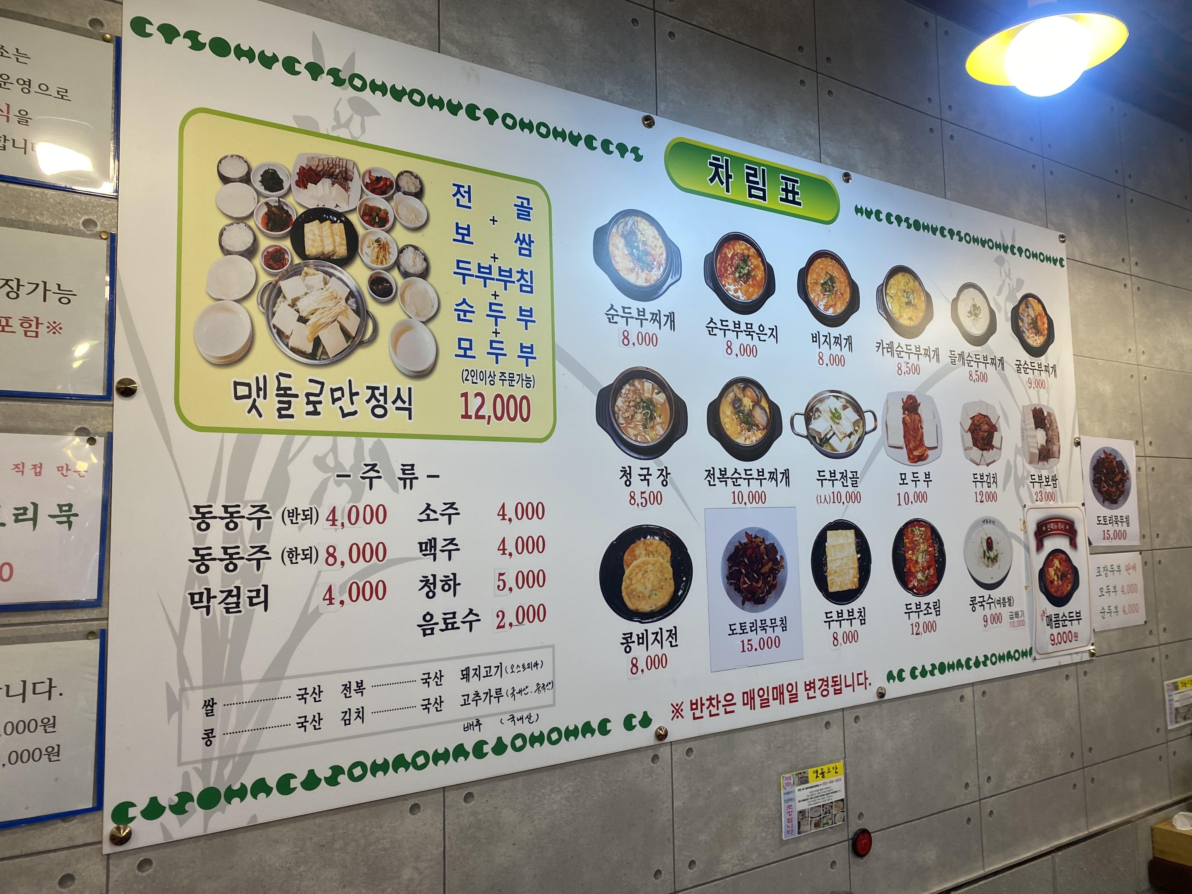 청라 순두부 찌게 맛집 맷돌로만의 메뉴는 국산콩 100%를 맷돌과 가마솥으로 만든 전통두부요리로만 구성이 되어 있습니다. 저는 대표메뉴인 순두부찌게를 주문했습니다.