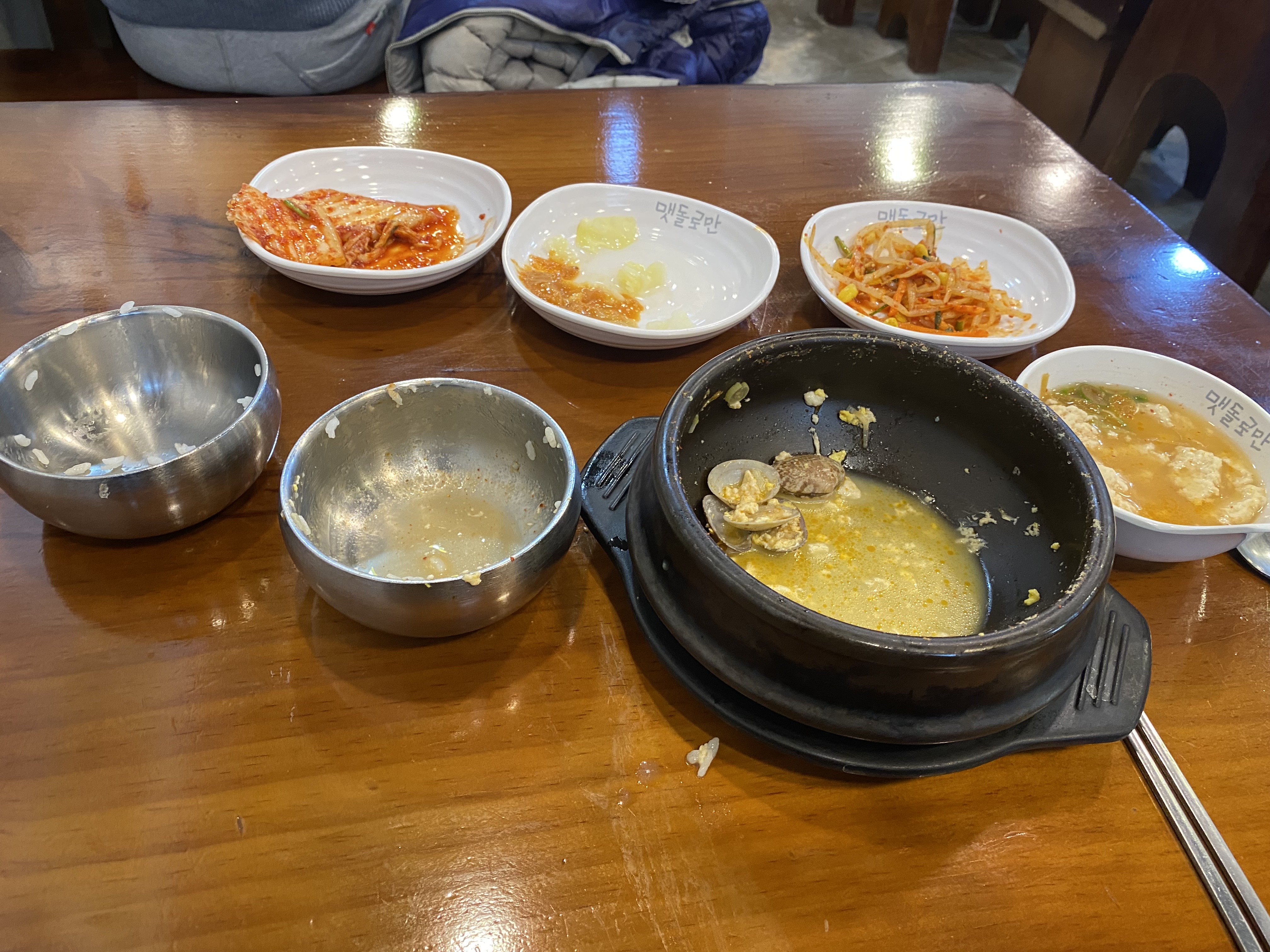 공기밥 두 그릇과 맷돌로만 순두부찌게 한 그릇을 뚝딱 해치워버렸습니다.