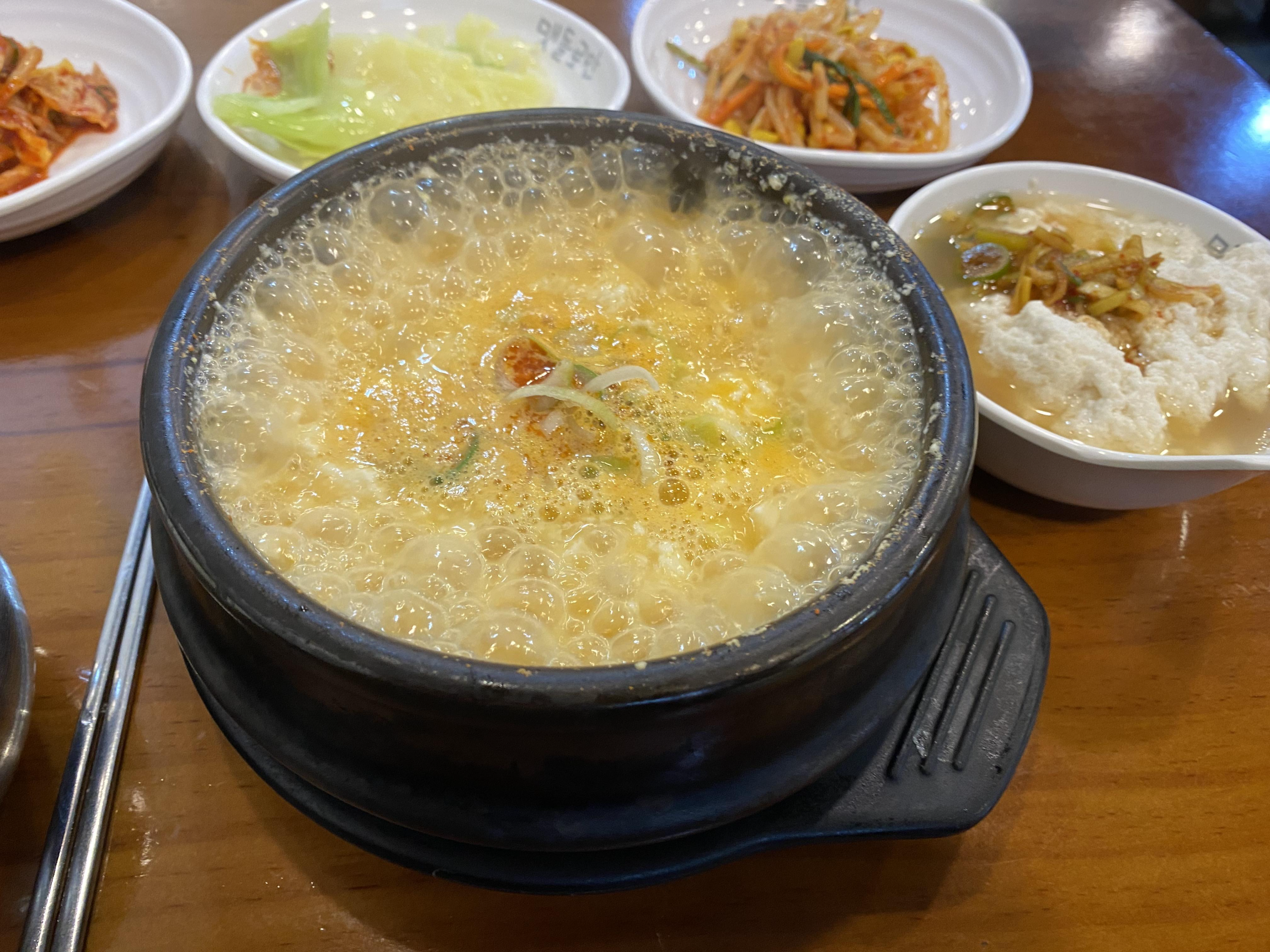 처음에 나오면 보글보글 끊여져 있는 상태여서 내용물이 잘 안 보입니다. 보통 생각하는 순두부찌게와는 다른 모습입니다.