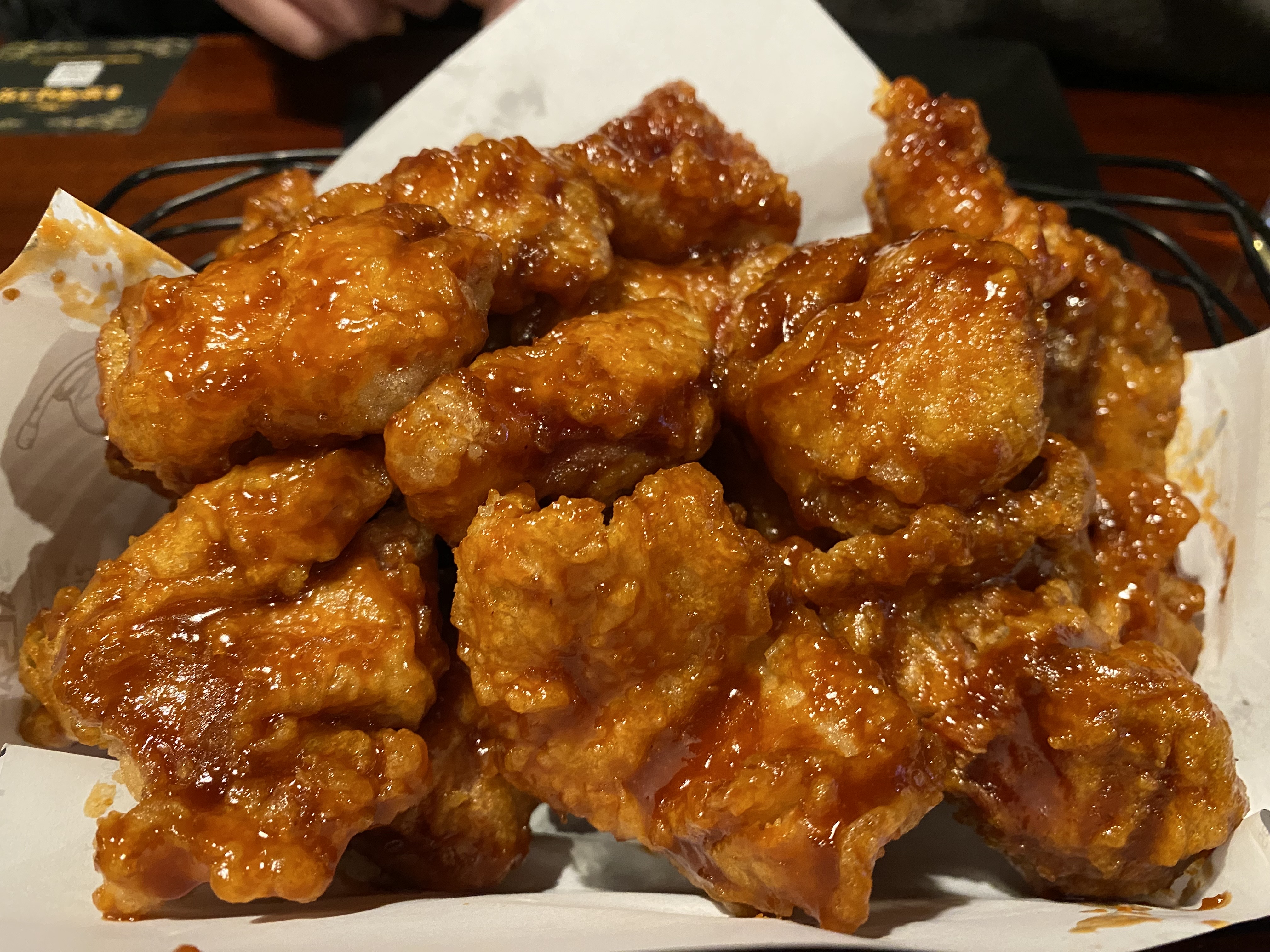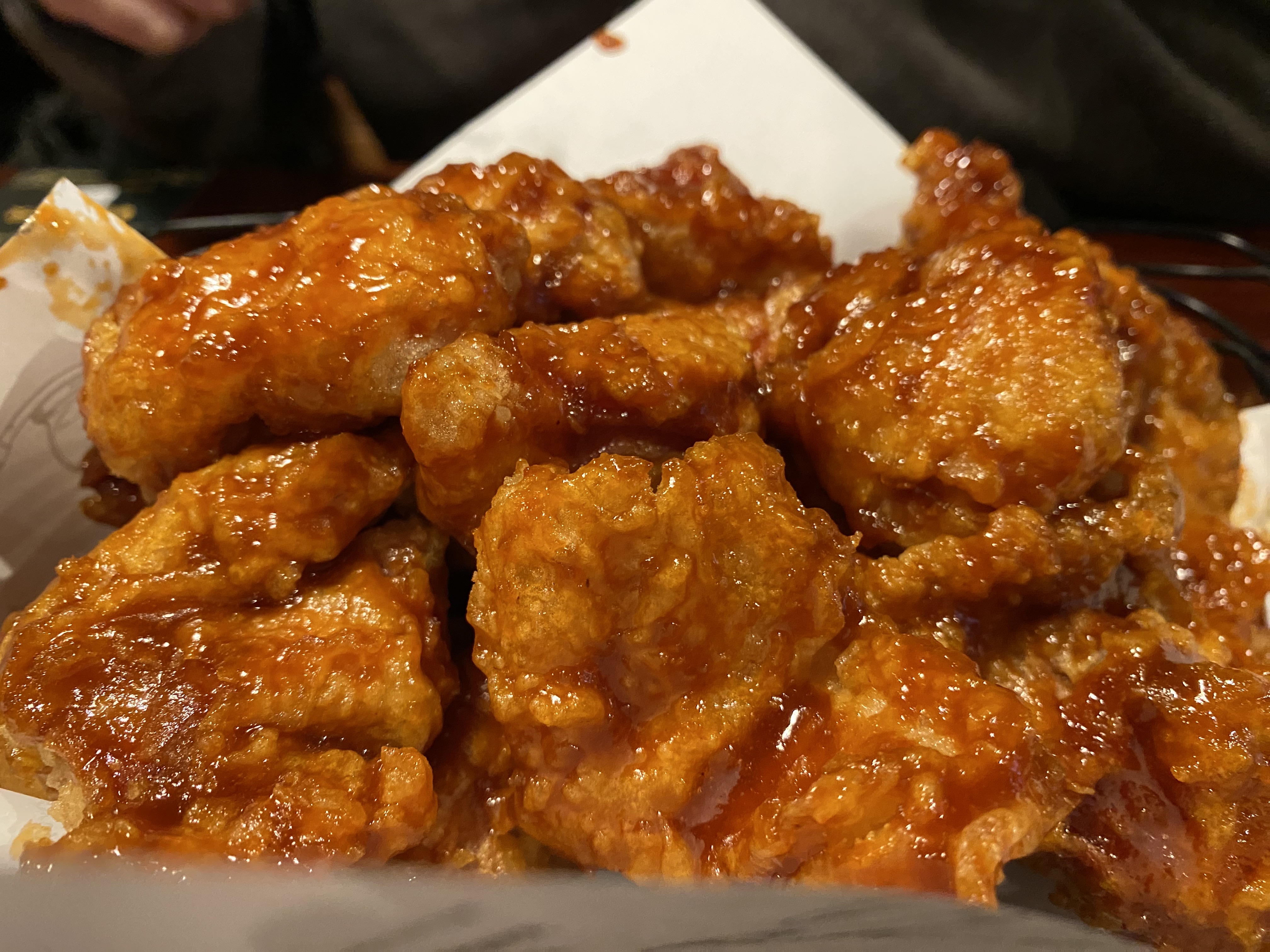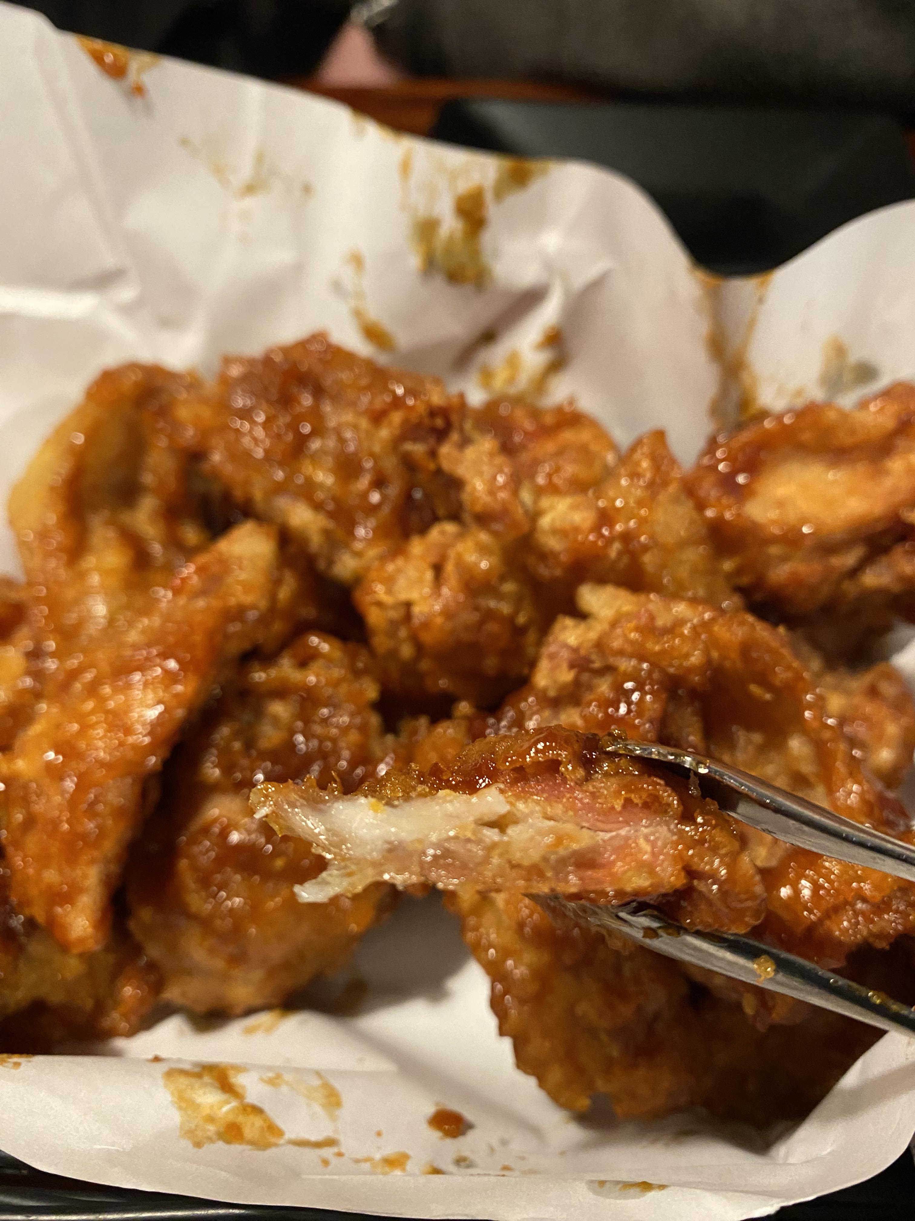 교촌치킨 매장에서 주문하고 오랫동안 기다려서 나온 레드순살 치킨의 모습입니다. 언뜻 보기에는 평상시와 같은 순살이라고 생각할 수 있습니다. 몇개를 먹다 보니깐 너무 얇은 순살치킨의 놀랐습니다.